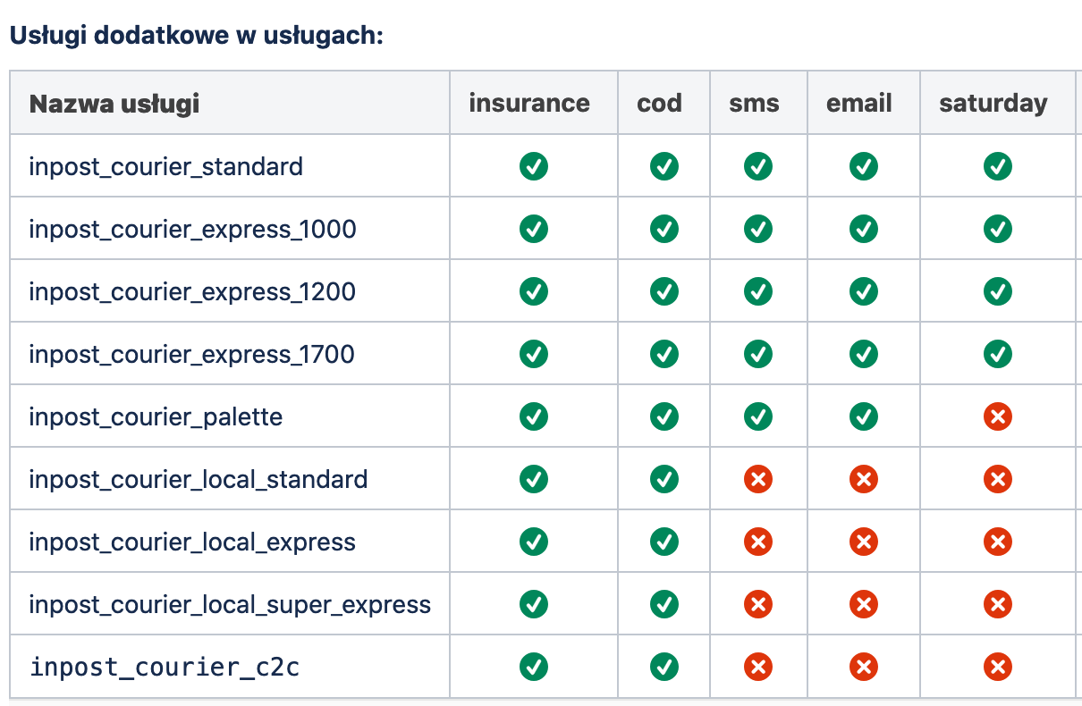 Zgodnie z informacjami dostępnymi w dokumentacji API InPost wybrane usługi dodatkowe - powiadomienie SMS i powiadomienie email są niedostępne dla usługi inpost_courier_c2c, czyli przesyłki kurierskiej z nadaniem w paczkomacie: